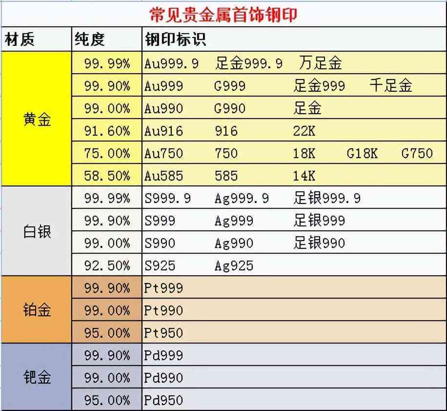 关于常见贵金属首饰的钢印,小编给大家总结成了一张图,大家拿走不谢!