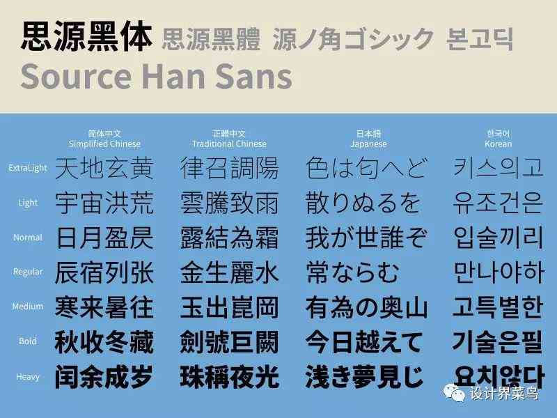 字体一直是设计师必备的东西,每一个设计师自己的字体库里都不尽相同。思源字体包括黑体与宋体,也早已经发布,今天写这篇文也是想给那些还不知道在哪里下载的菜鸟们。还有就是想作为一个系列文章的开头,来一个抛砖引玉。后期在设计界菜鸟里还会分享很多资源及教学。(说这个话就是那些还没转发、分享、关注的菜鸟们赶紧的)