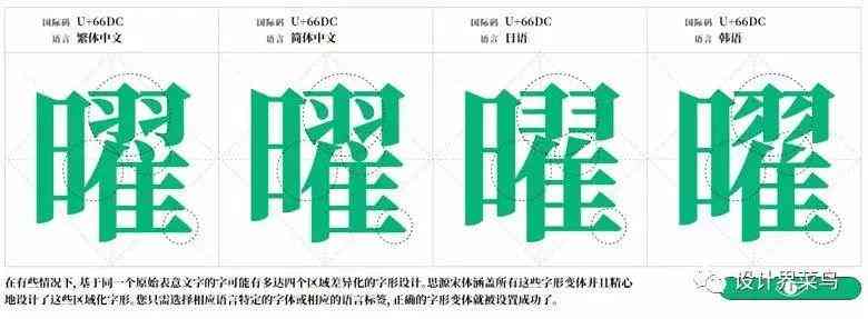 并且在同等情况下,我们同一个字不同语种也是在很多细节上有所差异,我们只要在相应语言特定的字体或者相应的语言标签,正确的字形变体就会被设置成功。