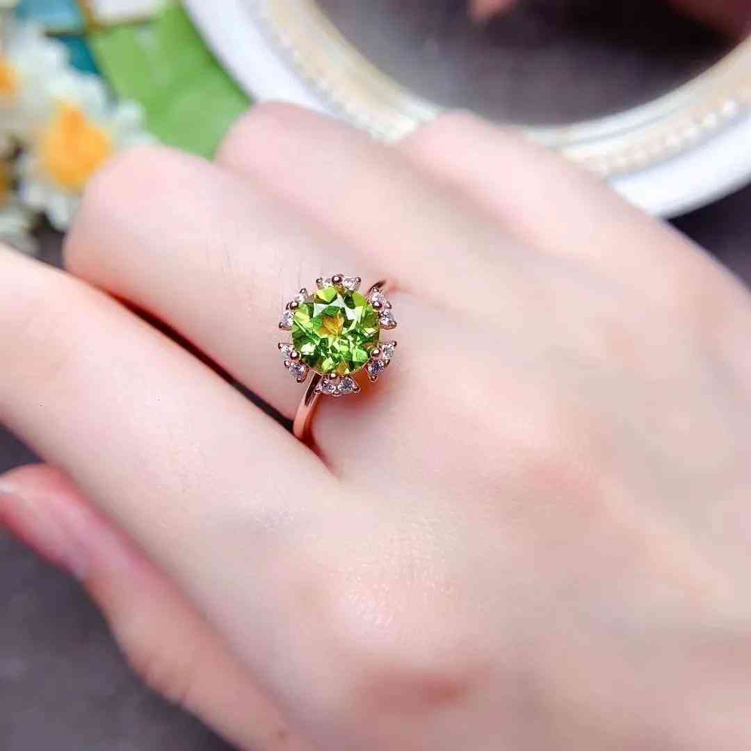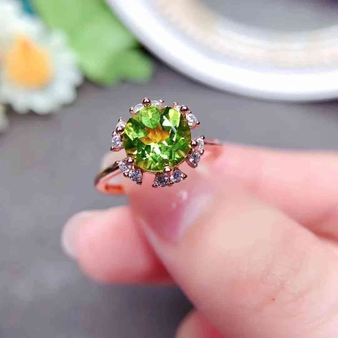 主石:天然橄榄石8mm圆形戒面