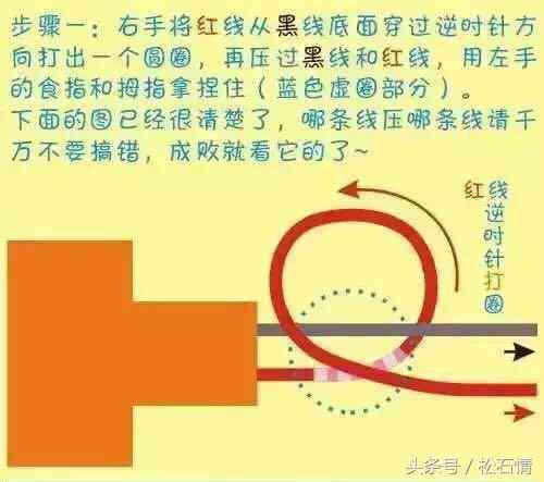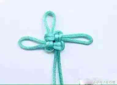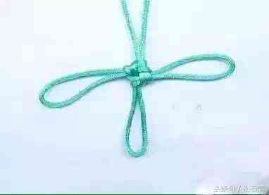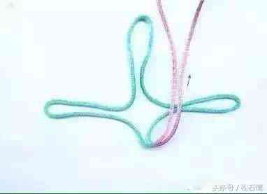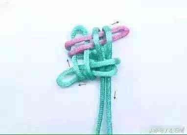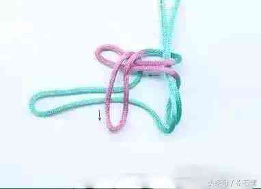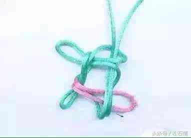 第四步将左侧的耳朵穿入下方两线所留空隙