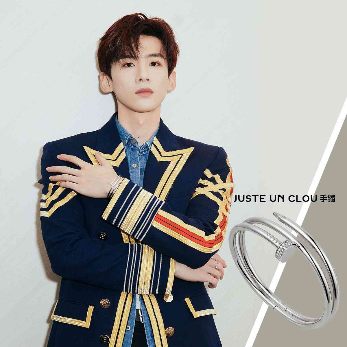 卡地亚Juste un Clou手镯:俗称钉子手镯,卡地亚品牌挚友张震每次做活动都会佩戴这款钉子手镯。白敬亭在出席时尚芭莎年度派对时也佩戴了白色的钉子手镯。