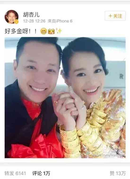 TVB女星胡杏儿结婚当时,金光闪闪。