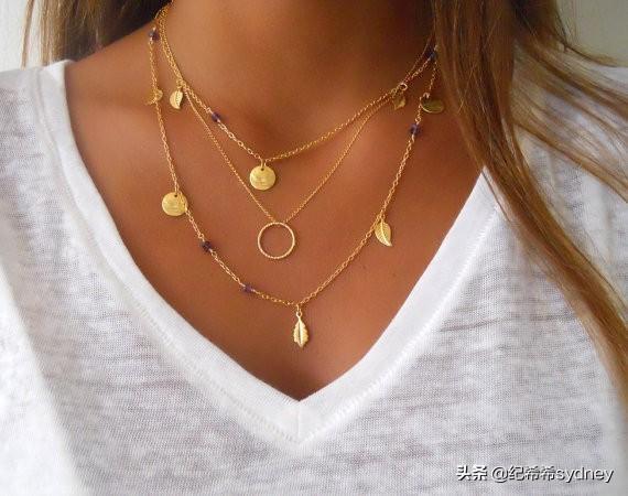 项链也走的精致“小而美”路线,搭配衬衫非常典雅;