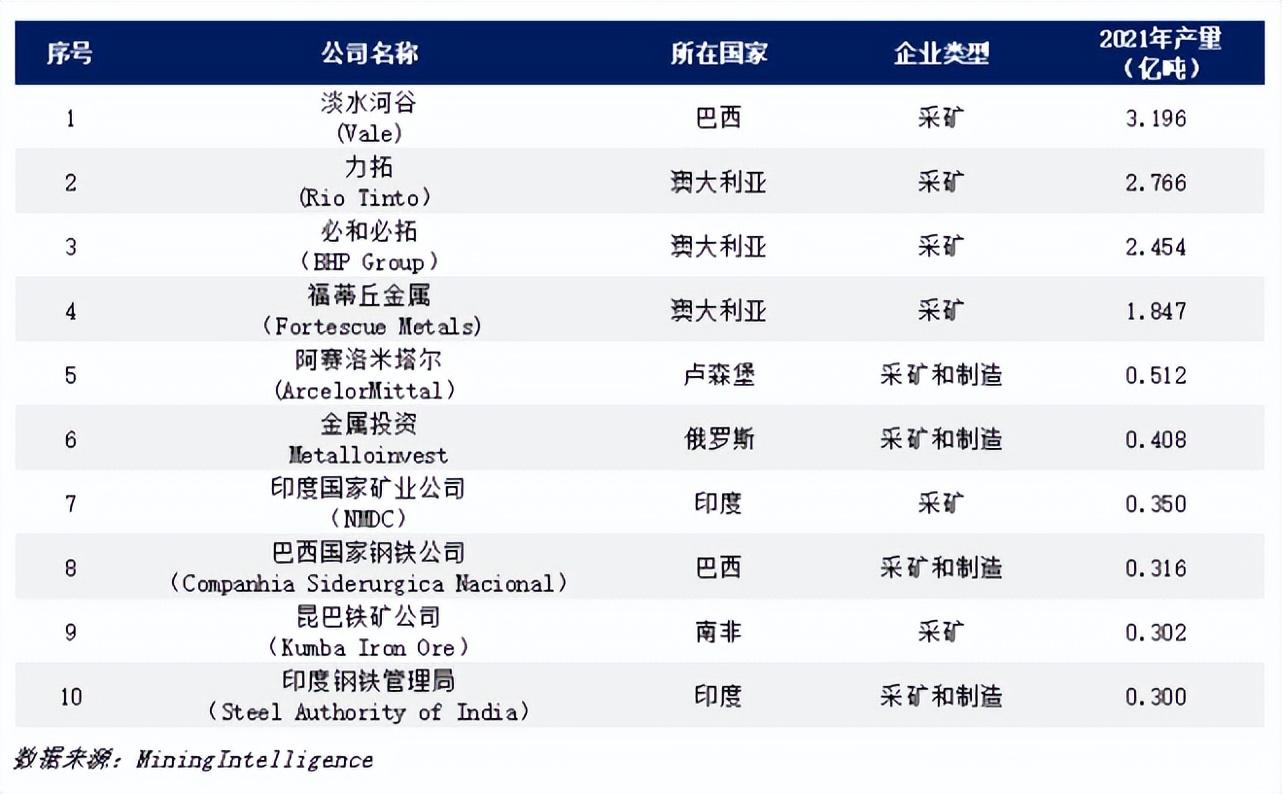 知识拓展:铁是地球上第四种丰富的元素,仅次于氧、硅和铝,约占地壳的5%。铁矿石储量从国家来看,澳大利亚、俄罗斯、巴西、中国四个国家铁矿石原矿储量占比达到了73.5%,分布极不均衡,其中,澳大利亚铁矿石储量最为丰富,占全球比重达到28.5%,其次为巴西19.4%,俄罗斯14.2%,中国11.4%。但从品位来看,南非、印度平均品位超过60%,俄罗斯、伊朗铁矿石平均品位在50%~60%之间,澳大利亚、瑞典、巴西平均铁矿石品位在40%~50%之间,中国铁矿石平均品位仅34.5%,远低于全球铁矿石平均品位的46.6%。中国尽管是第三大生产国(中国国内铁矿大部分品位含量极低,属于贫矿行列),但每年约80%的铁矿石需要进口。