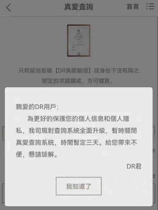 所以大家纷纷又把矛头对准了DR公司,号称“一生只能送一人”的钻戒,原来登记手段这么儿戏,有身份证号就可以的了吗?