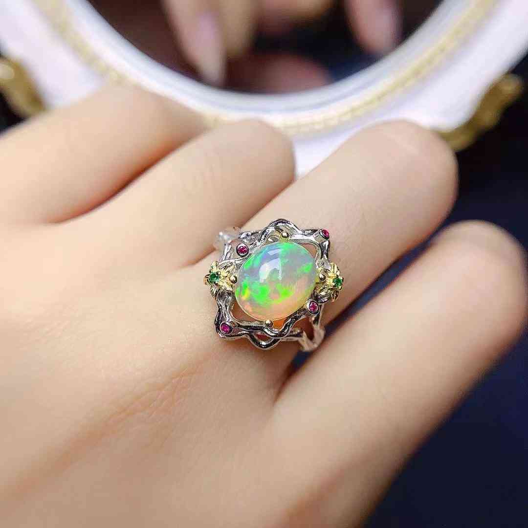今日新款JC07,s925银天然变彩欧泊戒指8×10,299米,