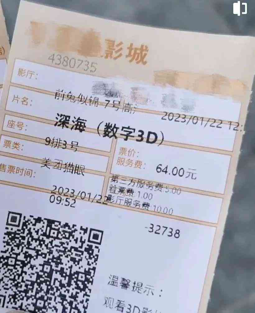《深海》的票根三类是巧立名目加价的。比如初一我有个朋友晒出的北京某影院《深海》票根,实付了80元,由票价64元、网售服务费5元、“验票费”1元和影厅服务费10元构成。但实际上,票面价格由电影票价、网售服务费(3-5元)和影厅服务费(票价的10%)三项组成。其中只有票面价格是进入国家电影专项资金、片方和院线分账的。网售服务费由网售平台收取,不进入分账。一般如果不是特殊影厅,都不能收取影厅服务费,更根本没有“验票费”这一说。所以这11元差额被影院截留了。观众实际付出了高票价,但统计数据显示不出来。过去几年,影院非常艰难,甚至把前几年的盈利都亏进去了。春节期间想多挣钱无可厚非,但坚决不能饮鸩止渴,违法违规。