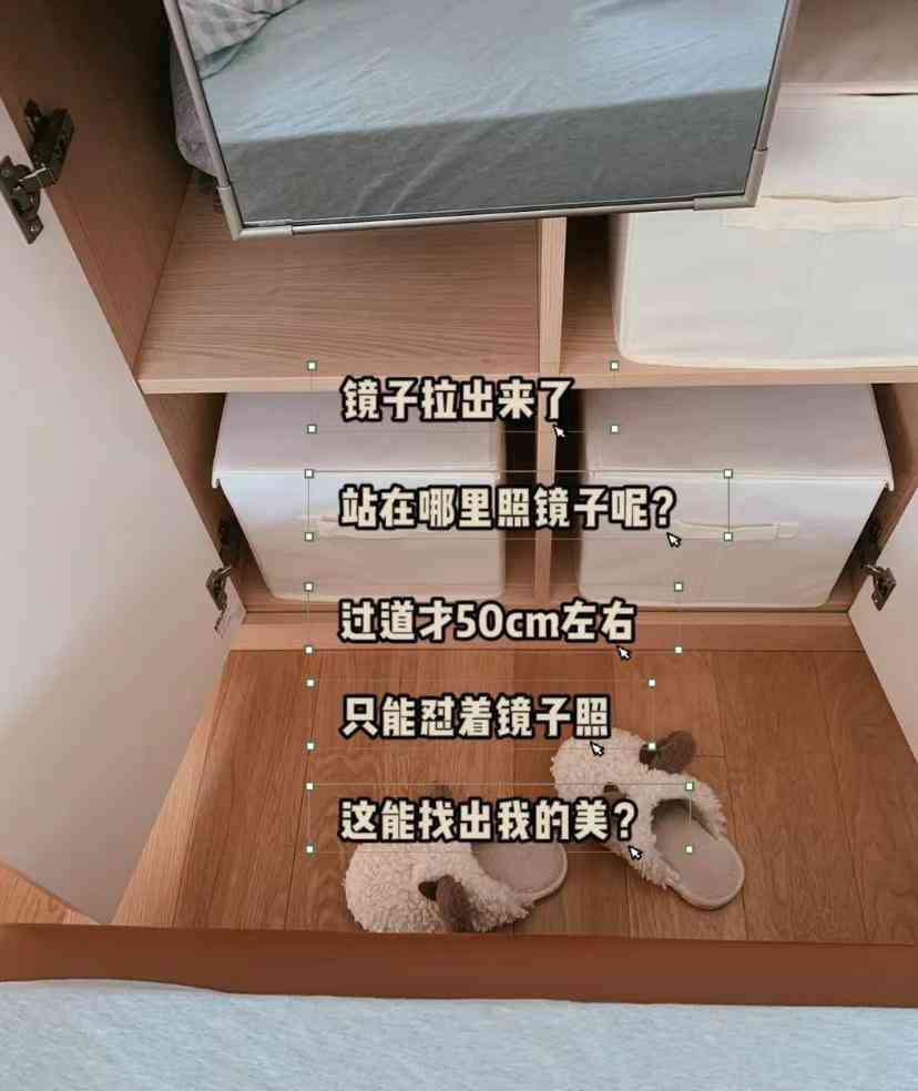 然而后续在多次的整理工作中,才发现这种隐形穿衣镜绝对是鸡肋中的鸡肋,虽然说是可以推拉伸缩,可是轨道和镜面就占据了一定空间。