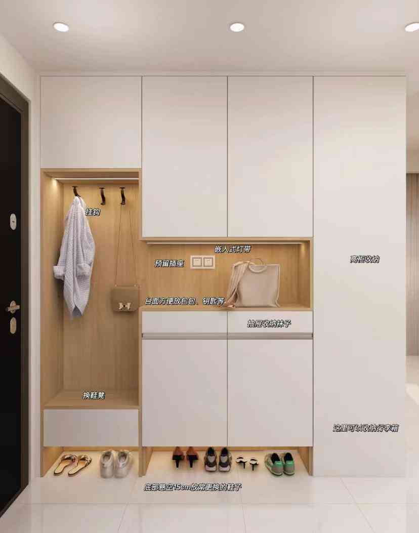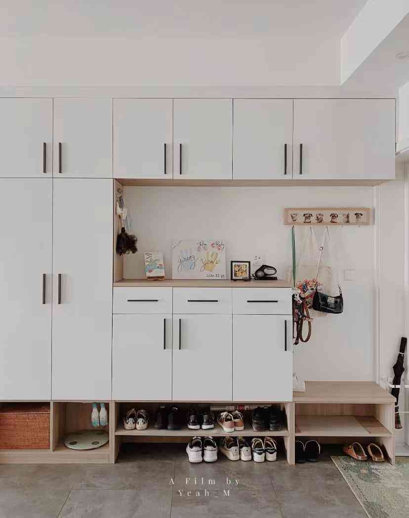正常来说,柜体抬高留出常穿鞋和拖鞋收纳就足够了,鞋子不会堆积,脏了及时清洗后放入鞋柜,玄关整洁度更高。