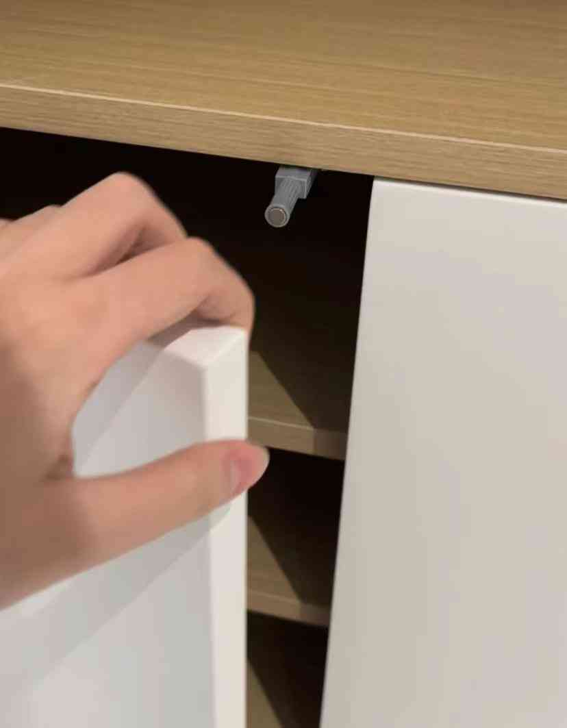 对吊柜来说就更方便了,直接将柜门下挂1—2公分,也能很轻松打开。