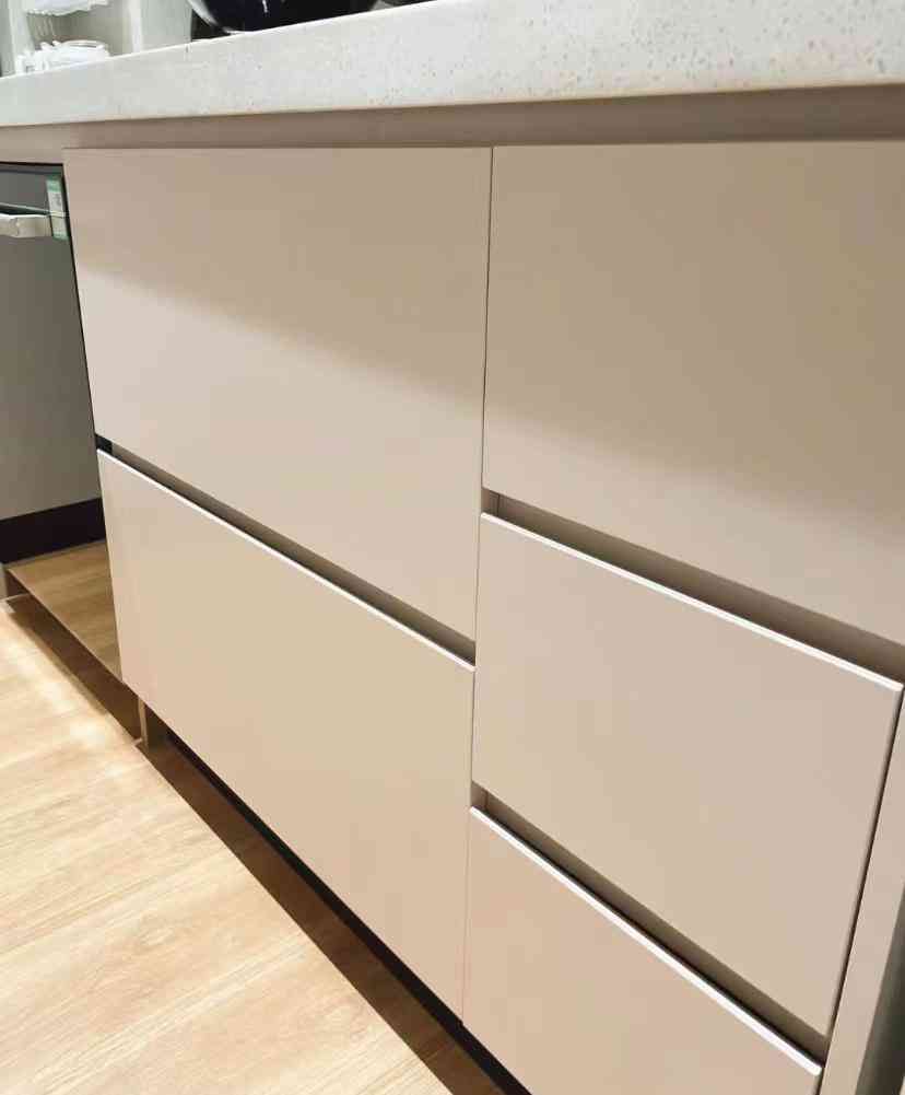 抽屉设计,可以斜切拉手或安装嵌入式拉手,都非常简约耐看。关键是这些设计入住后相对实用,不会反复坏,用起来轻松,省去不少麻烦。