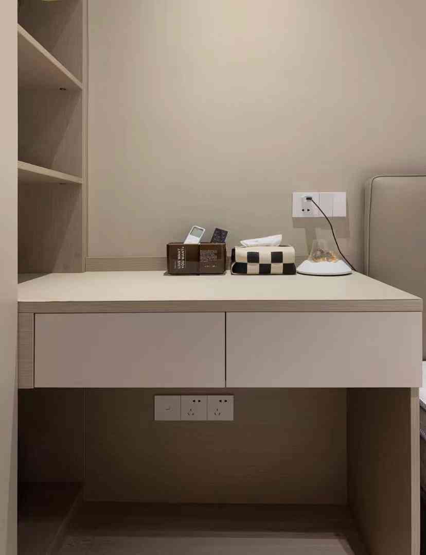 并且书桌位置上方还全部做开放式,方便收纳书籍,书桌未来可以办公或者方便孩子写作业,甚至可以充当梳妆台。