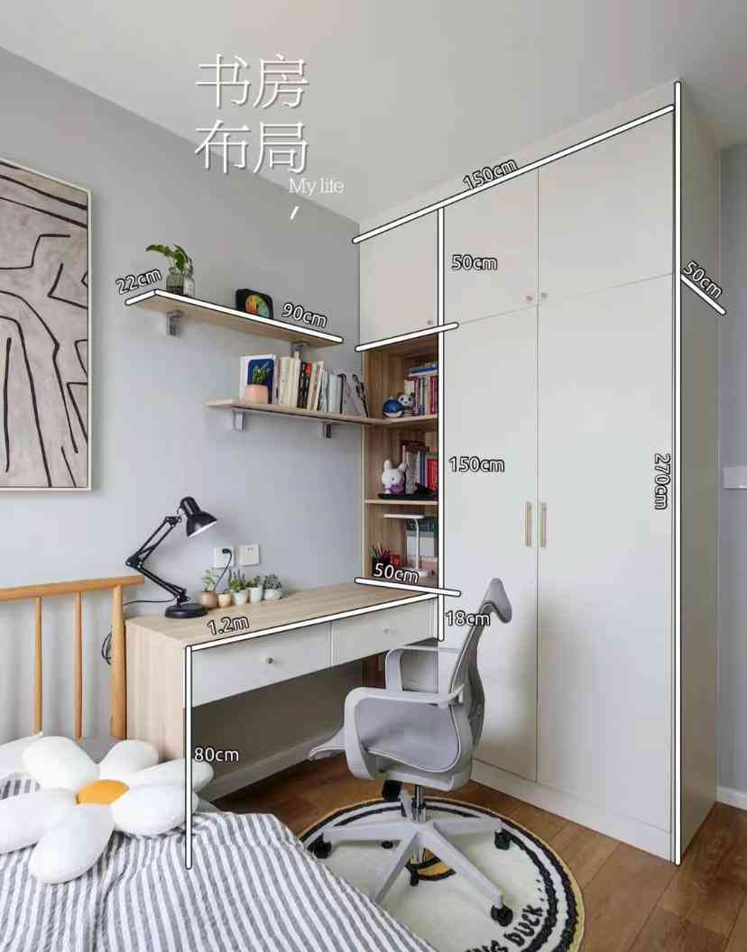 若是想在卧室内增加书桌,不如直接缩小衣柜空间,留出书桌位置。这样随着孩子成长书桌也可以灵活调整。一体式的设计就缺少了这一灵活性,加上空间逼仄,反而没有想象得实用。