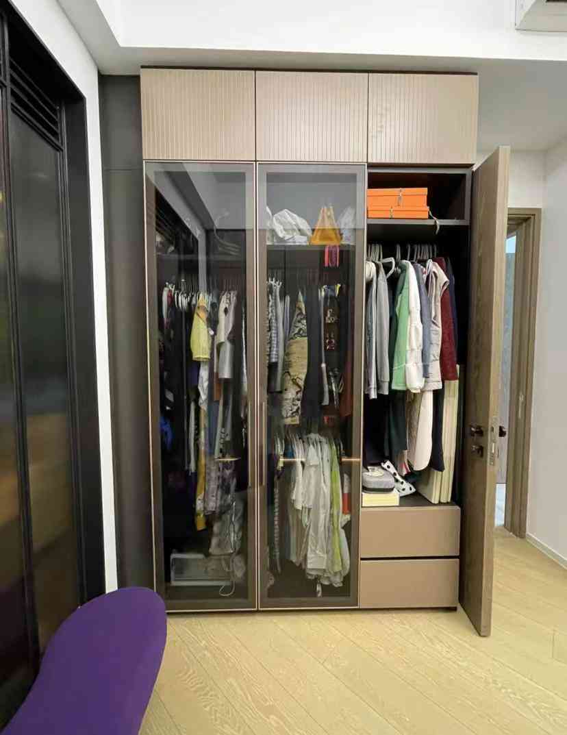 玻璃衣柜过去我们更多是在商场和家具店看到,往往给人高级大气、布局美观的视觉冲击。逐渐地有人把这一设计用在家装里,而且这两年竟然还越来越流行了。