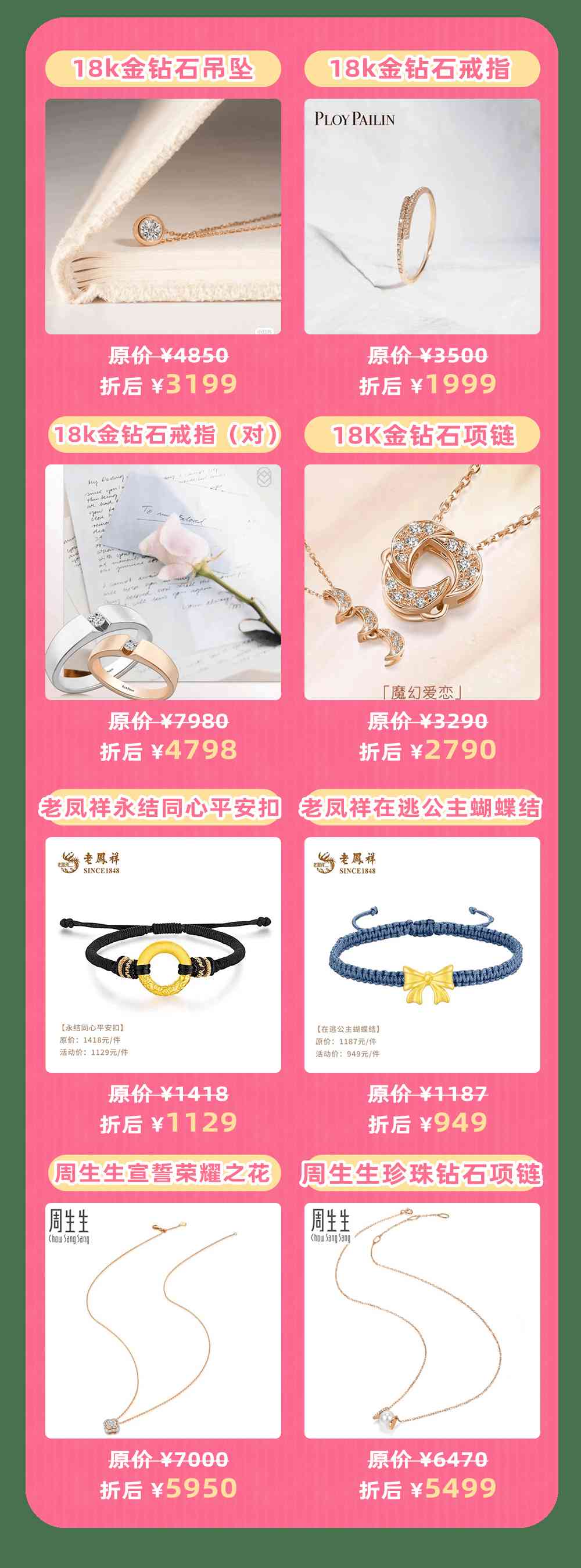 黄金至高克减50,珠宝镶嵌7折