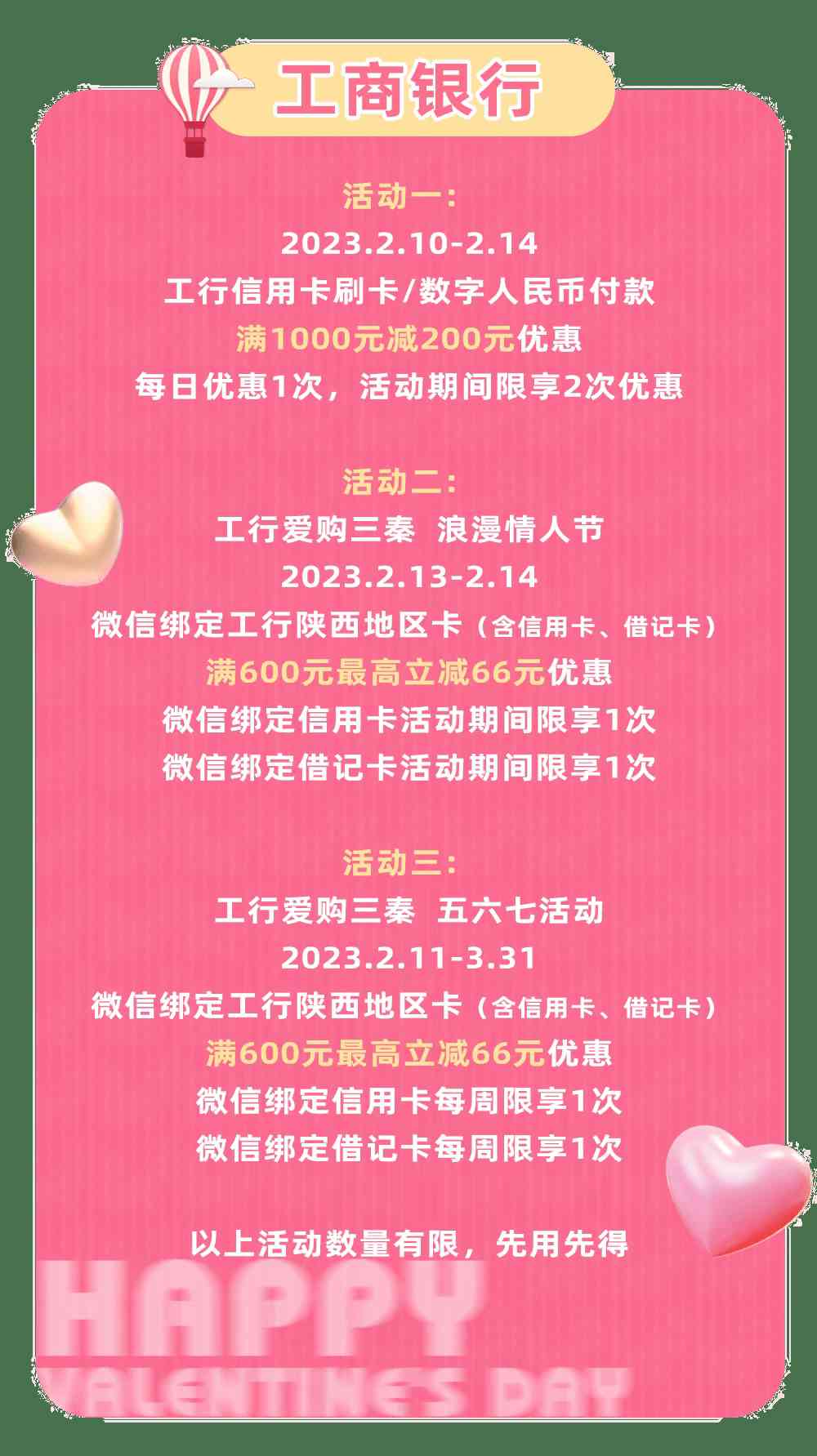 ②200元美妆券兑:单笔交易满500用100元,不与商场其他活动同享。2月14日当天券升值50%使用,使用规则不变(满500减100)。