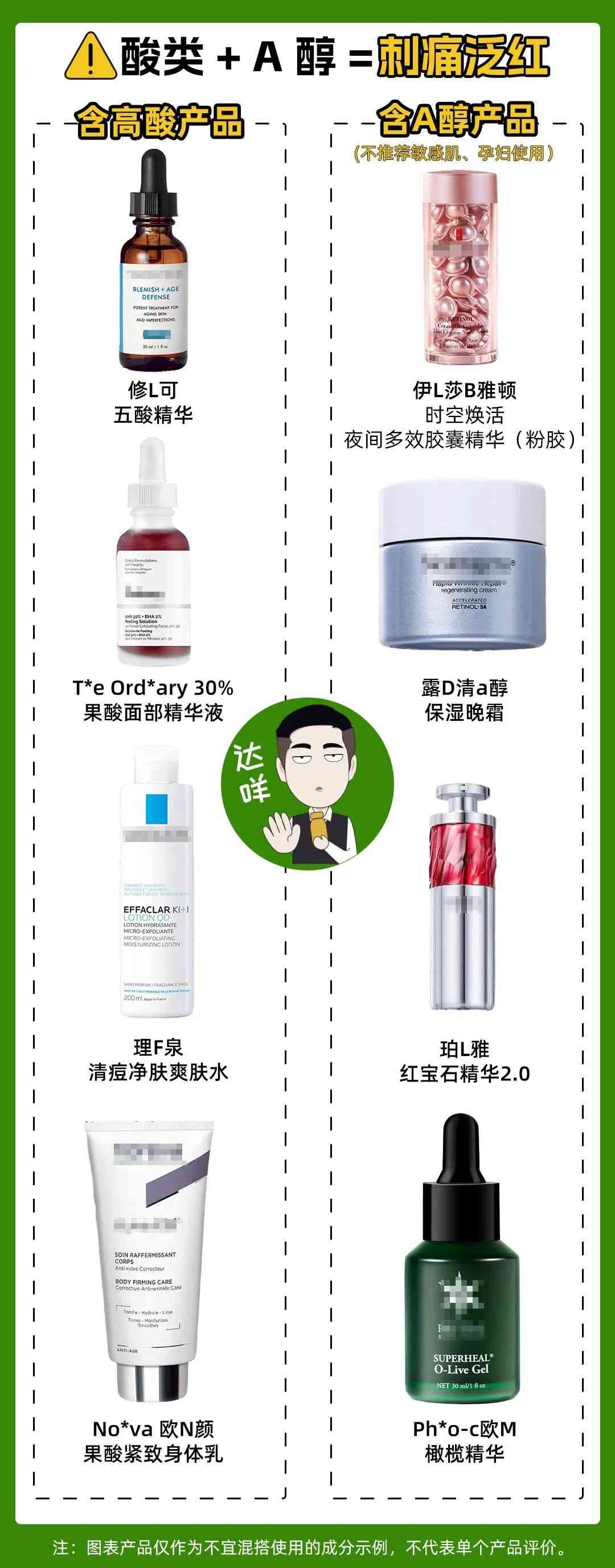 另外,卡片中列举的护肤品作为不宜混用的成分示例,无法覆盖到你们使用的所有产品。还是需要大家举一反三,注意搭配。