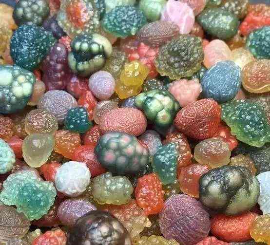 像市场上所卖的色彩丰富的玛瑙玉髓玛瑙类(尤其是红、绿、黄、紫色珠子、手镯等等)产品大多都是人工灼色,上图这样就是在南阳镇平拍的,那边零卖二三十,拿货就不晓得啦。