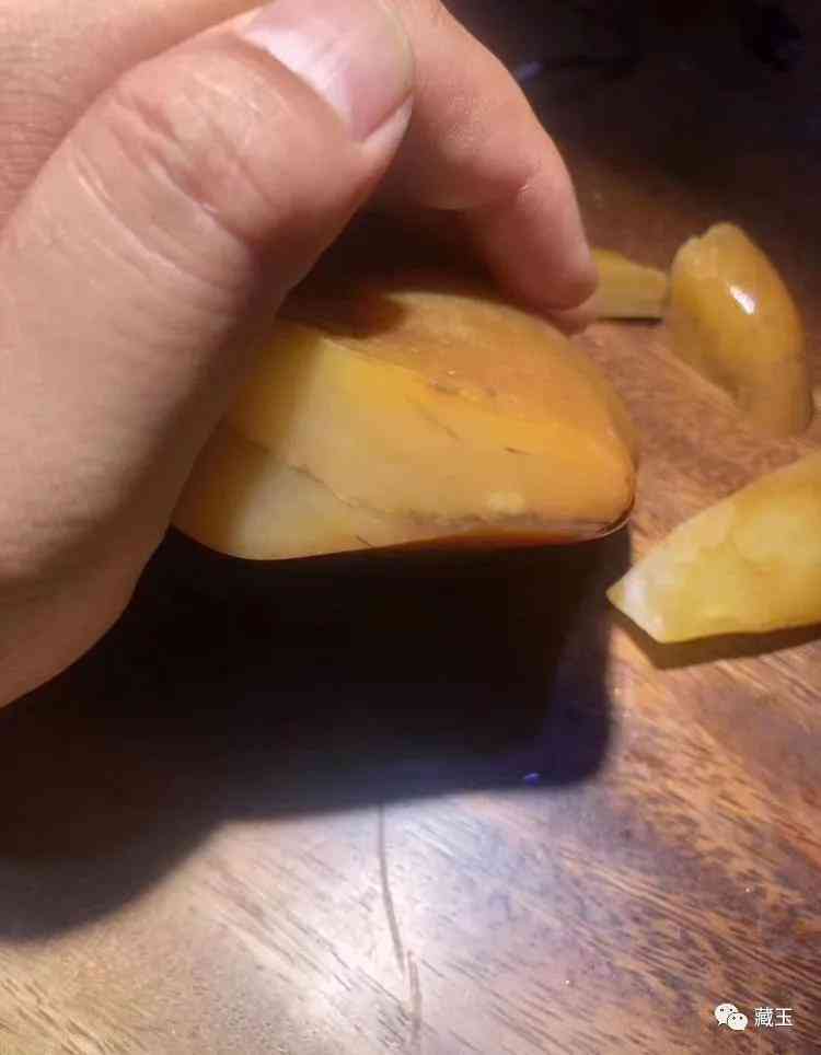 再次是块度大。尤其是对于黄口料来说,多裂的特性,注定了大且完美的黄口料非常非常稀少,所以,大块度且干净、裂少的黄口料就显得非常珍贵。