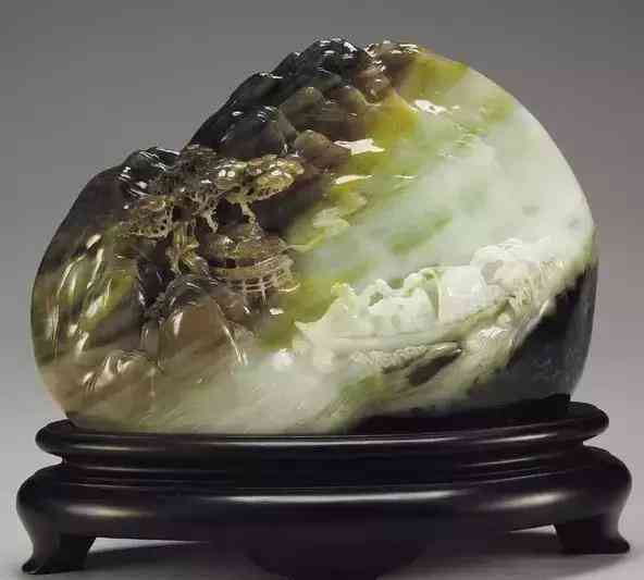 2、桃花玉。呈黑色、淡蓝色、绿色等,纹理较清晰,观赏性高。