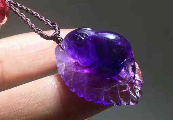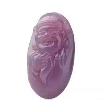 4、紫玉髓。呈深紫红色,无杂质为佳,腊状光泽,淡柔紫色。