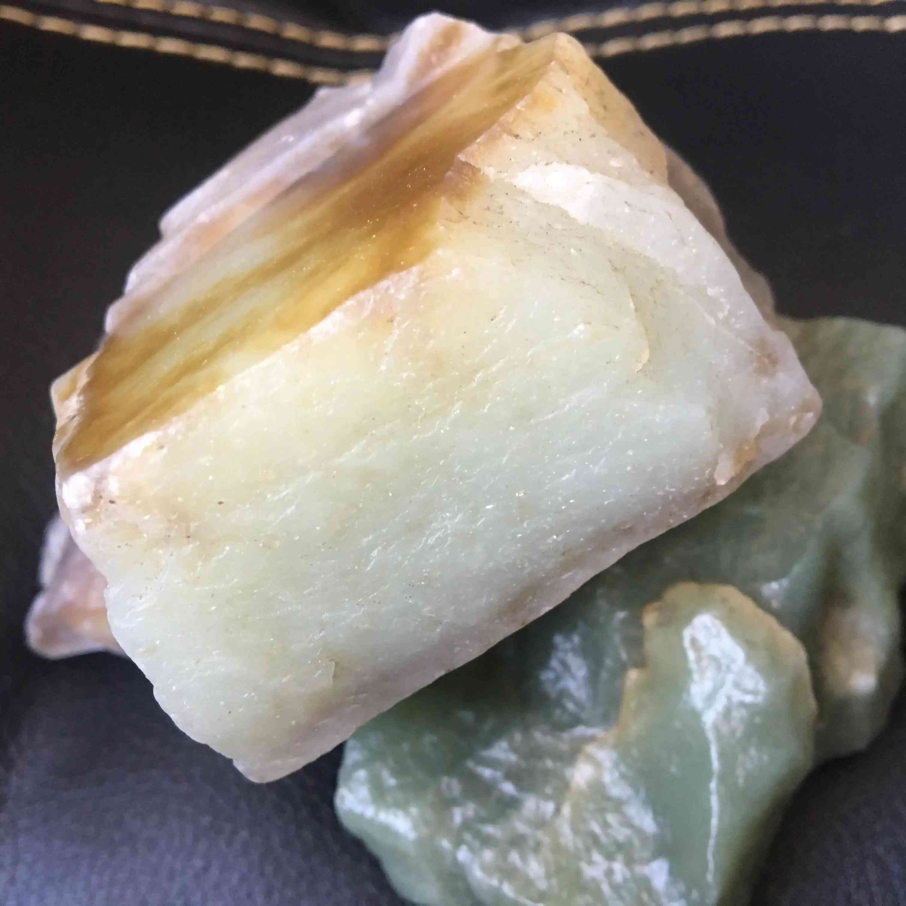 4、大凉山黄冰玉。剔透晶莹,光泽细润,白黄色较多。