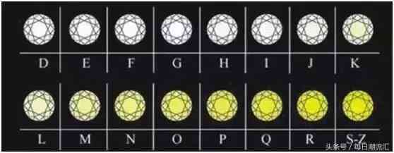 钻石按国际从无色—黄色颜色分级,一共分为23个等级,分别用字母D—Z来表示。