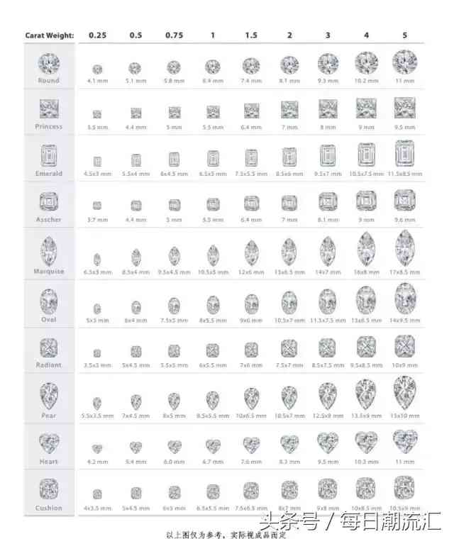 ▼钻石形状大小对照图(点击图片,放大查看,上面的内容会更清晰)
