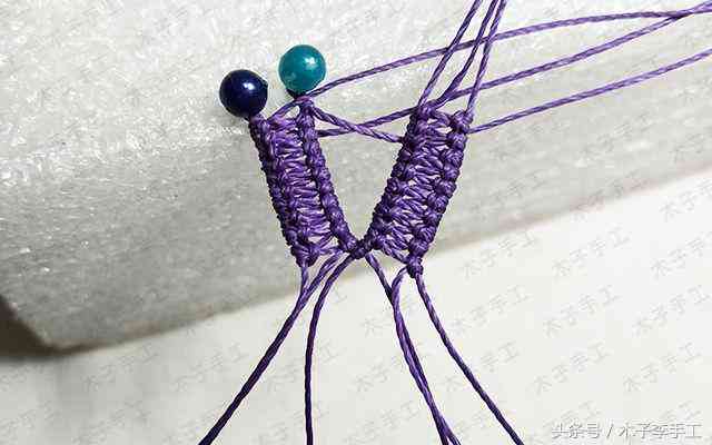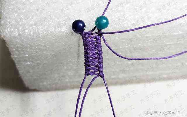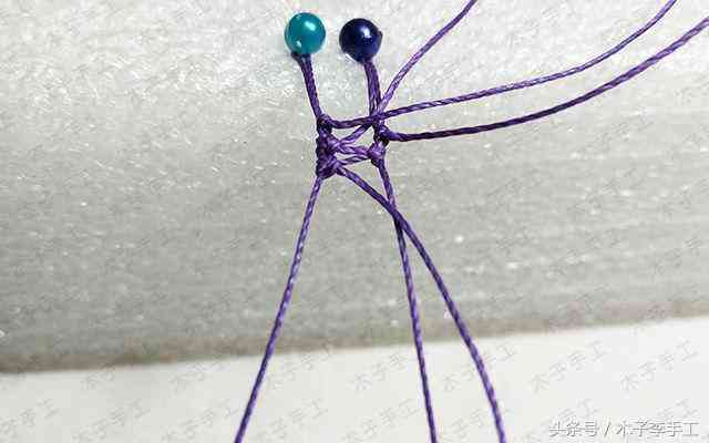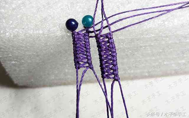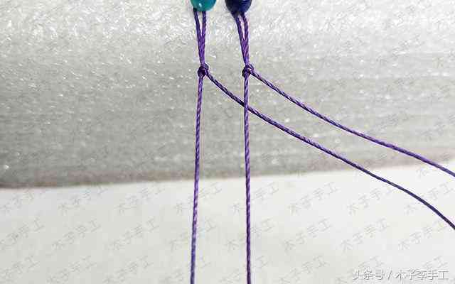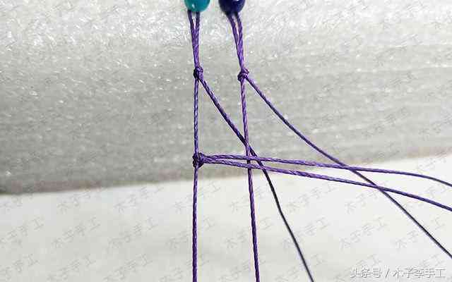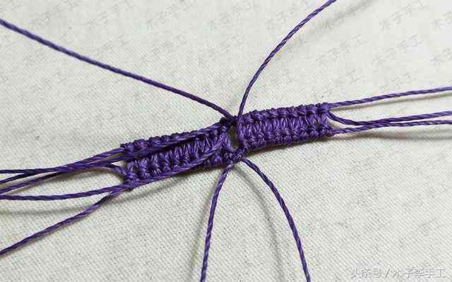 30、以外面2根线为轴线,中间两根线为绕线,做单向平结