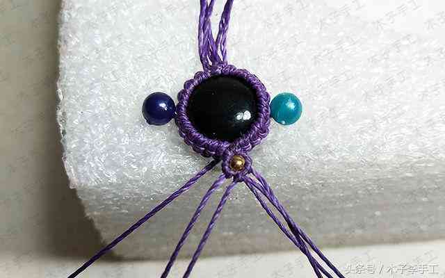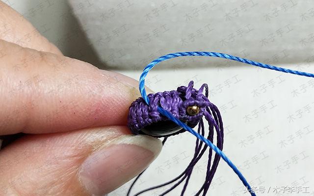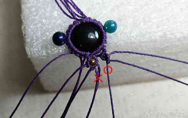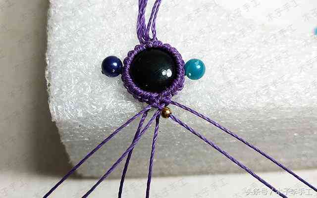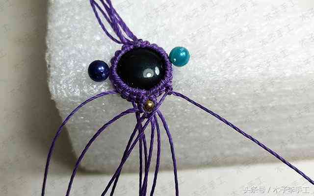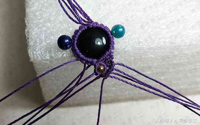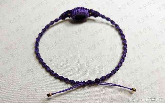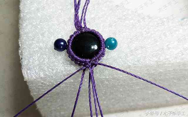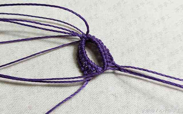 33、把手链围成一个圈,用一根剪下来的长一点的线头在上面做单向平结