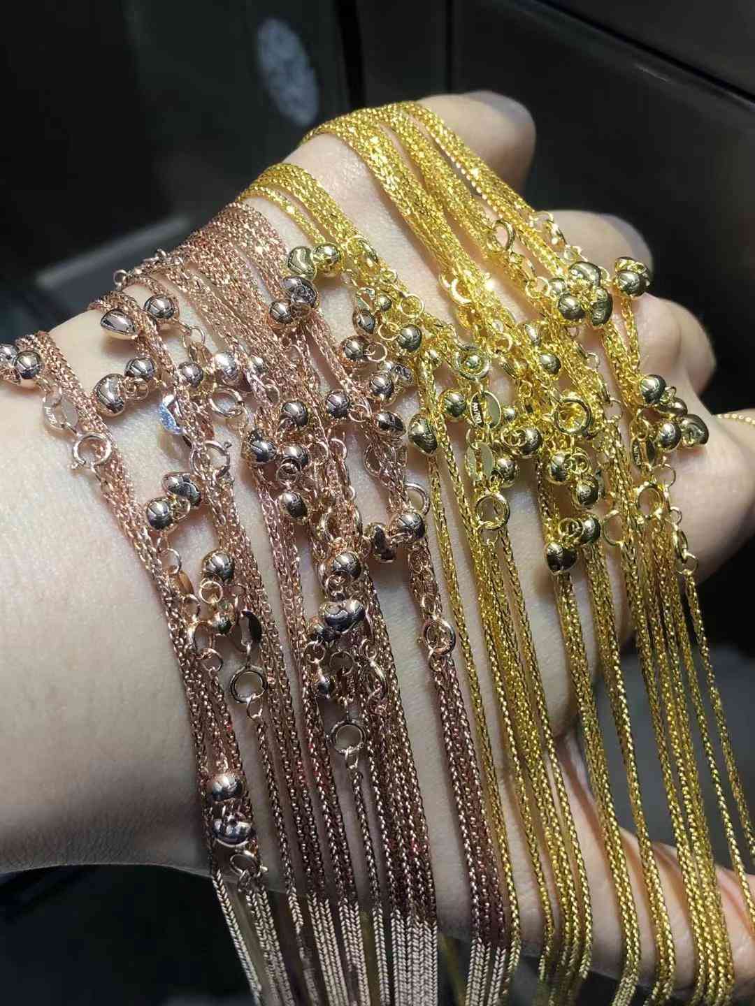 首饰材料的价值:有些朋友觉得18K金不纯不值钱这属于偏见,18K金含有75%的黄金,黄金今天料价398一克,折算下来18K金回收价值就有298一克了。单独的一条18K金项链一般2克左右,算下来还能卖600左右呢。