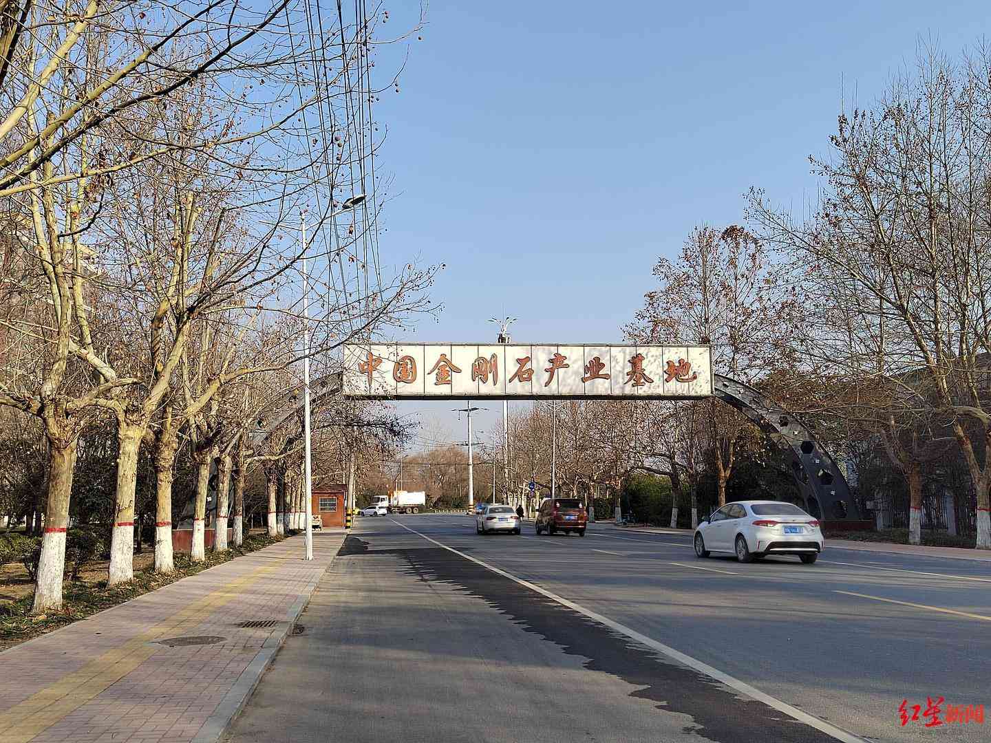 ↑柘城县工业园“金刚石产业基地”标识