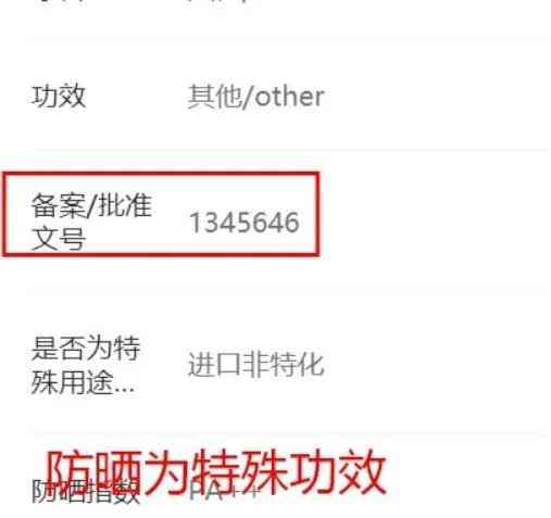 错误2:防晒为化妆品特殊功效词,只有取得特化批件的化妆品方可使用。如“是否为特殊用途化妆品”选择了“进口非特化” ,防晒与进口非特化信息则互相矛盾。