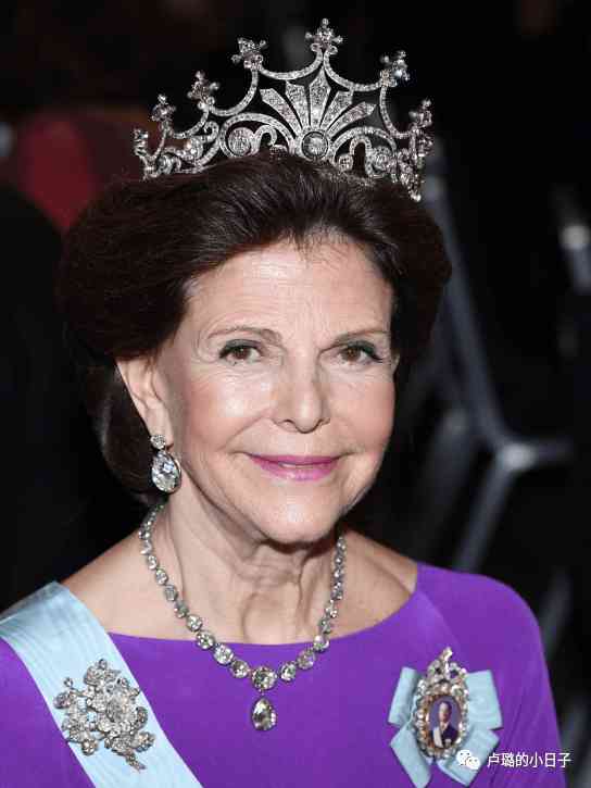瑞典王后西尔维娅则是雍容华贵,钻怎么大,怎么闪,怎么来。