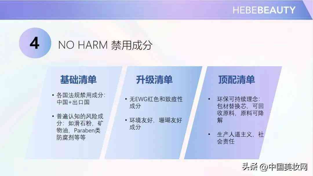 这里我就抛出一个问题,就是当我们做到了前面三个清真、动物0残忍、素食之后,是否可以宣称是clean 了?答案是没有,因为还有最重要一点禁用成分。