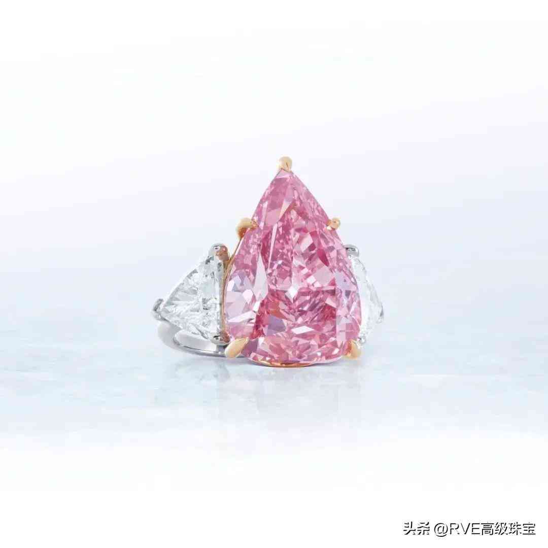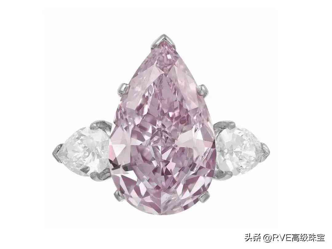 11月日内瓦佳士得「瑰丽珠宝」拍卖会上,最受瞩目的“The Fortune Pink”,彩色钻石配钻石戒指,改良梨形艳彩粉色钻石重约18.18克拉——迄今为止拍卖会上最大的梨形艳彩粉色钻石,色彩天然、VVS2净度,Type IIa,两边配镶三角形钻石,最终以2843.65万瑞士法郎(人民币约2.1亿)成交。