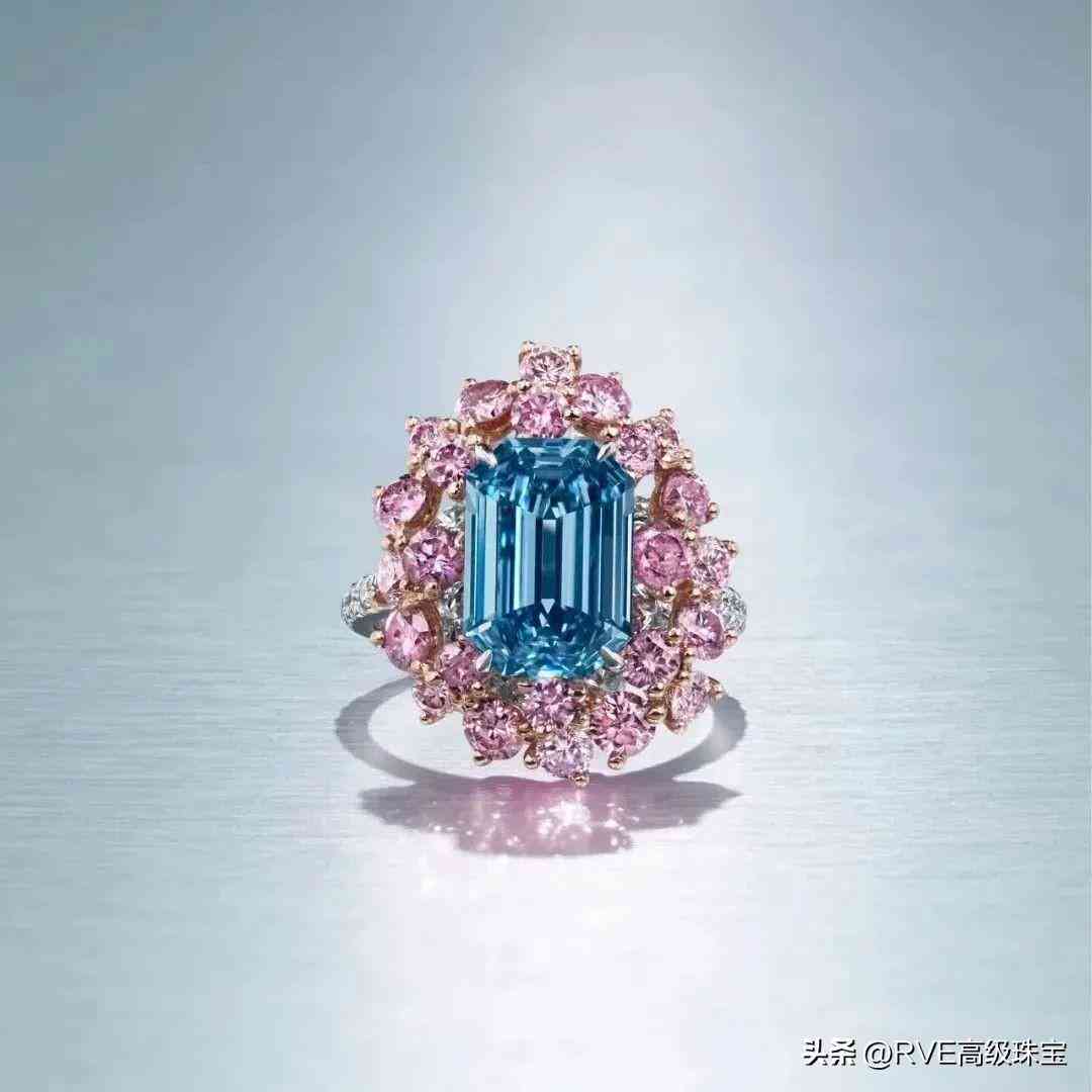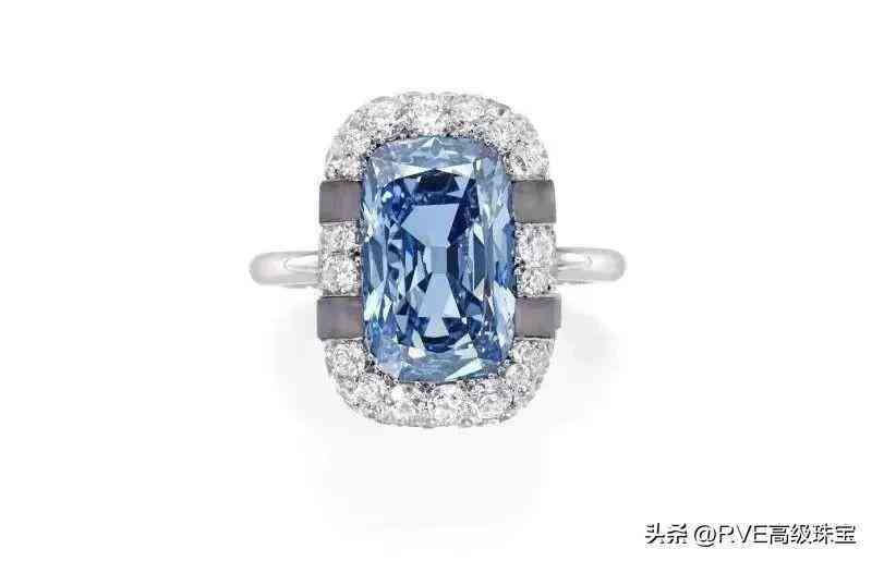 「长方形艳彩蓝色钻石戒指」