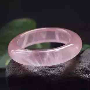 蔷薇石英又称为粉晶,呈粉红色,致色的原因是由于含钛。如果有结晶面则称为玫瑰水晶,但市面上还是以蔷薇石英居多。蔷薇石英通常被磨成圆球或是心形,代表爱情至死不渝,因此也被叫做爱情石。用它泡水洗脸,对皮肤有很好的保养功效,可以杀菌消炎,是的一种养颜玉,它最大的特点是变色快。