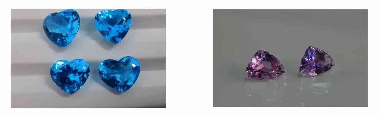 反应堆辐照托帕石变蓝(左) 辐射加深内在颜色(右)