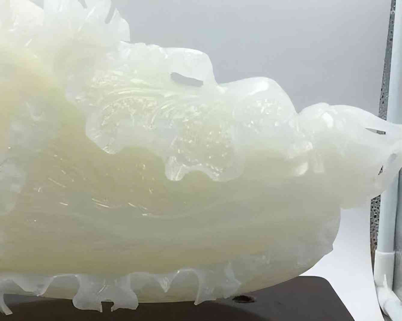 与和田玉相比,阿富汗玉硬度较低,颗粒较为粗糙,但透度相对较好。
