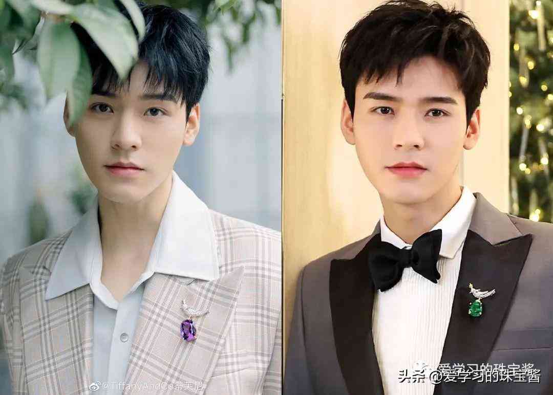 下图是明星龚俊佩戴分别佩戴两款石上鸟胸针出席活动。