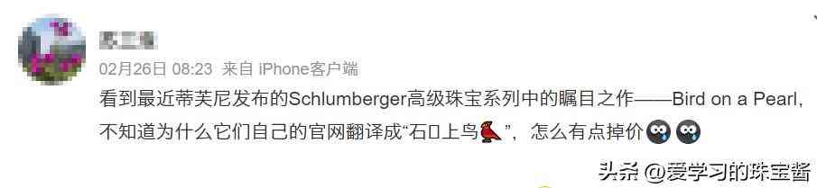 日前,蒂芙尼石上鸟系列又添新成员Bird on a Pearl,这次的宝石换成了珍珠, 蒂芙尼以稀有天然珍珠焕新演绎经典的石上鸟,全新艺术创作续写非凡想象。可是有网友竟然说“掉价”了。。。