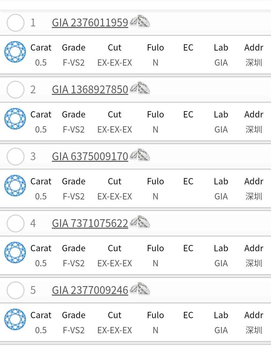 价格适中的50分裸钻颜色净度切工是什么样的?就大众都可以接受的性价比较高的50分裸钻来说,一般推荐H色、VS2净度、3EX切工,这种裸钻价格在1.1万左右,属于价格比较适中的范围。