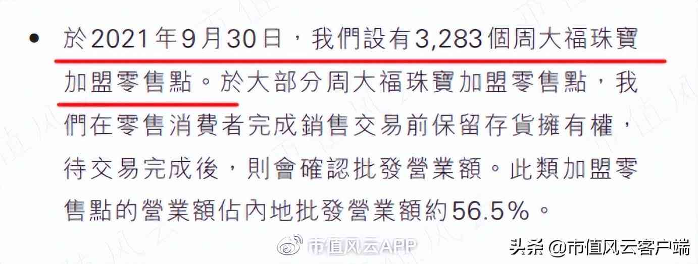 同时间点的周大生总门店数为4357家,加盟店4119家,比例为95%,明显高于周大福。