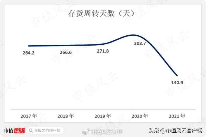 周大生营业收入的增长带来的便是存货周转能力的增强,周转天数已经从2020年的303.7天下降至了2021年的140.9天。