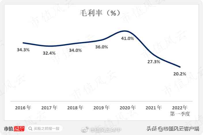 在今年一季度,毛利率已经下降至20.2%,为近几年来的最低数值。