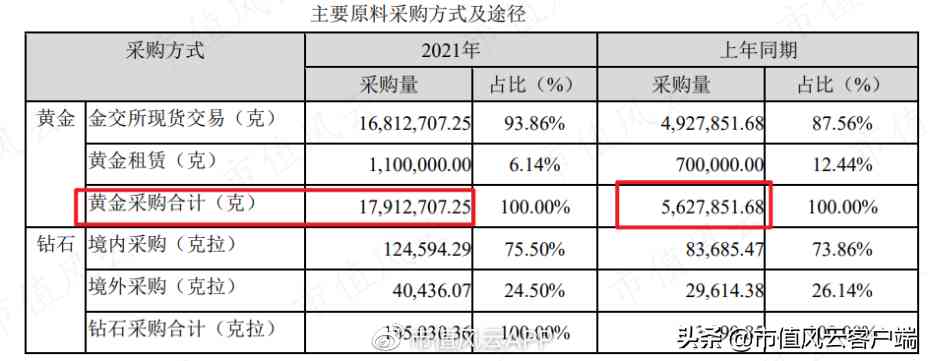 除此以外,周大生的黄金采购量也有了明显增长。采购金额相对上年同比增长了约203%。