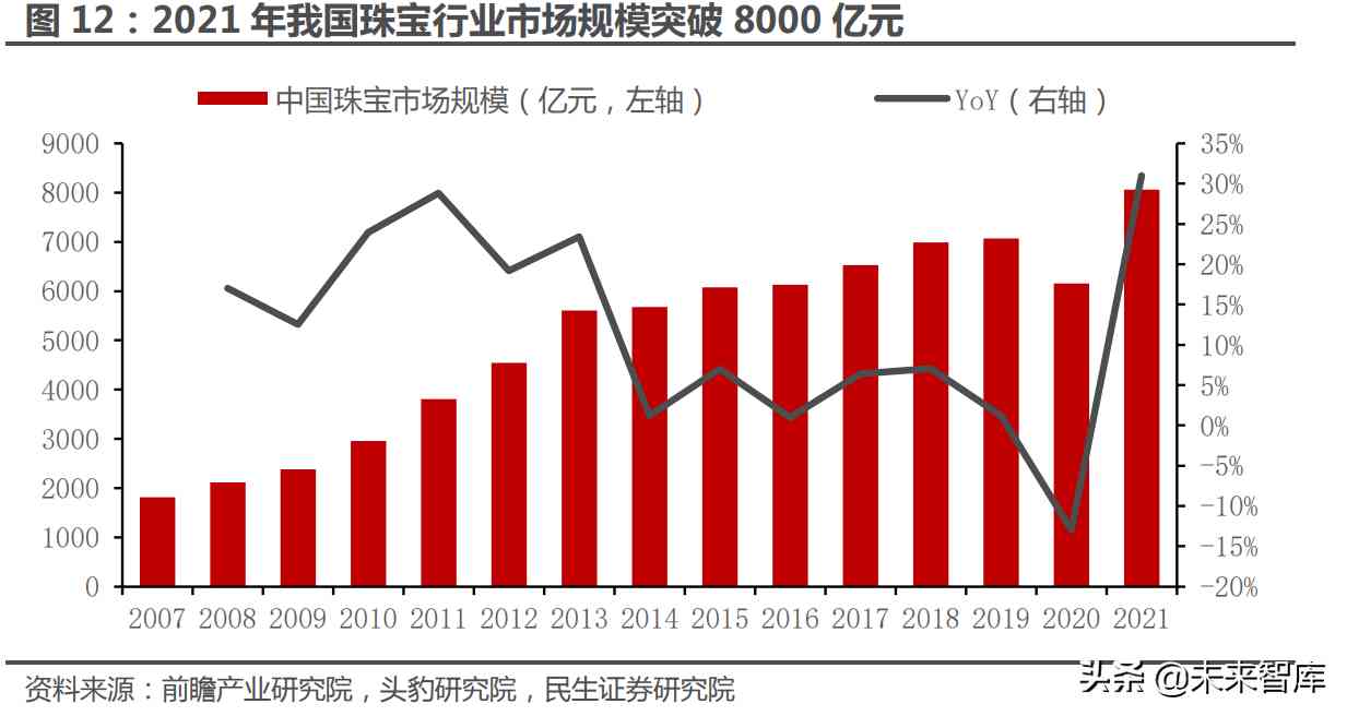 2.1 兼具成长与周期属性,国内珠宝市场容量突破八千亿