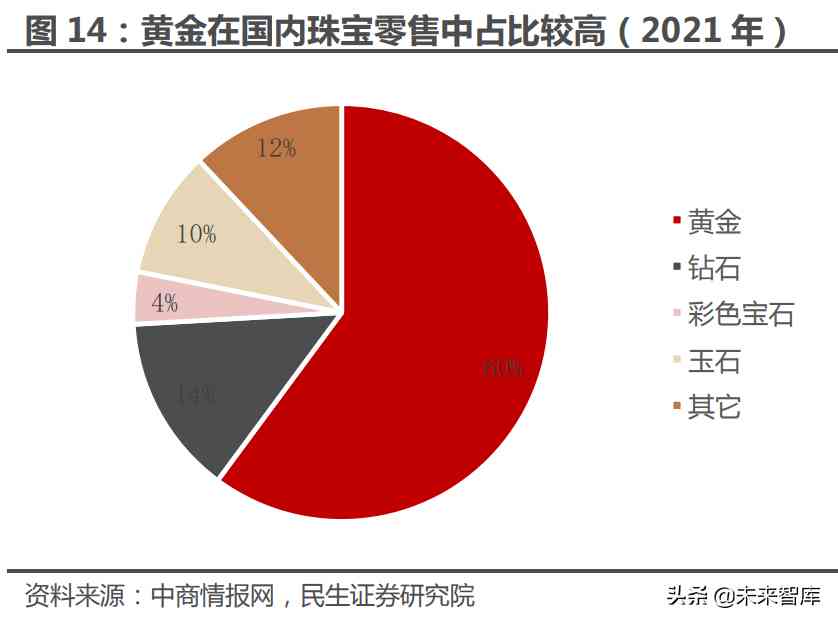 综上,自从放开黄金的自由交易之后,国内珠宝市场快速走向繁荣,庞大的消 费者基数加持之下,渗透率由低到高的过程中,行业在过去的 20 余年时间中整体 表现出较强的成长属性。同时,又由于受到黄金为主的产品结构影响,国内珠宝行 业又表现出一定周期属性。而除黄金单品之外,钻石、彩色宝石以及玉石等产品也 具备可观的市场容量,成为驱动我国珠宝市场规模增长不可忽视的重要动力。